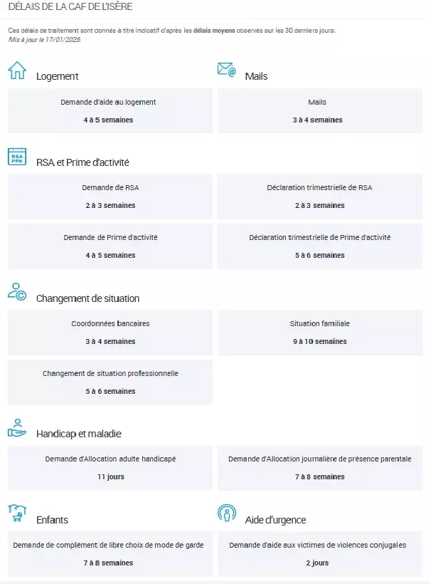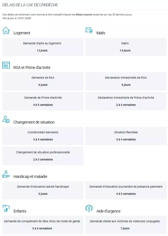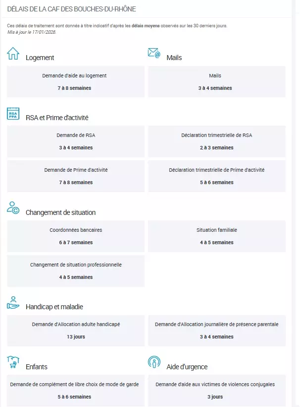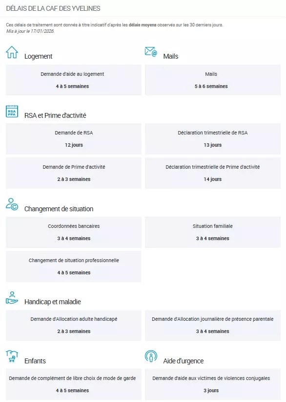 Ces délais correspondent à des moyennes observées, mais ne constituent en aucun cas un engagement de la Caf.